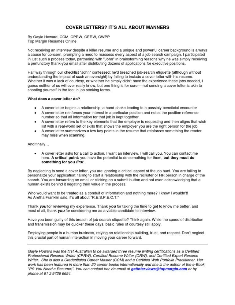 Even when a job listing does not specify that a cover letter is required, you should always submit one wi. A cover letter is at least as important as a resume in helping you land an interview for the job you want. Read full profile aren't you in a hurry? What to put in a cover letter. A cover letter provides a formal, written introduction to a company, a resume or a cv submission.